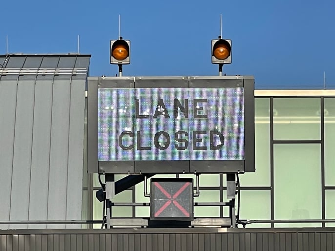 The LED sign above alternatively flashes for traffic flow to see the functionality of this sign. By implementing this new Front Access DMS and adding messaging to the toll booth system, there is an increase in transportation and visibility safety amongst drivers. The traffic flow efficiency increases, increasing revenue for the Deldot toll booth system, thus increasing traffic safety for drivers and toll booth system employees.